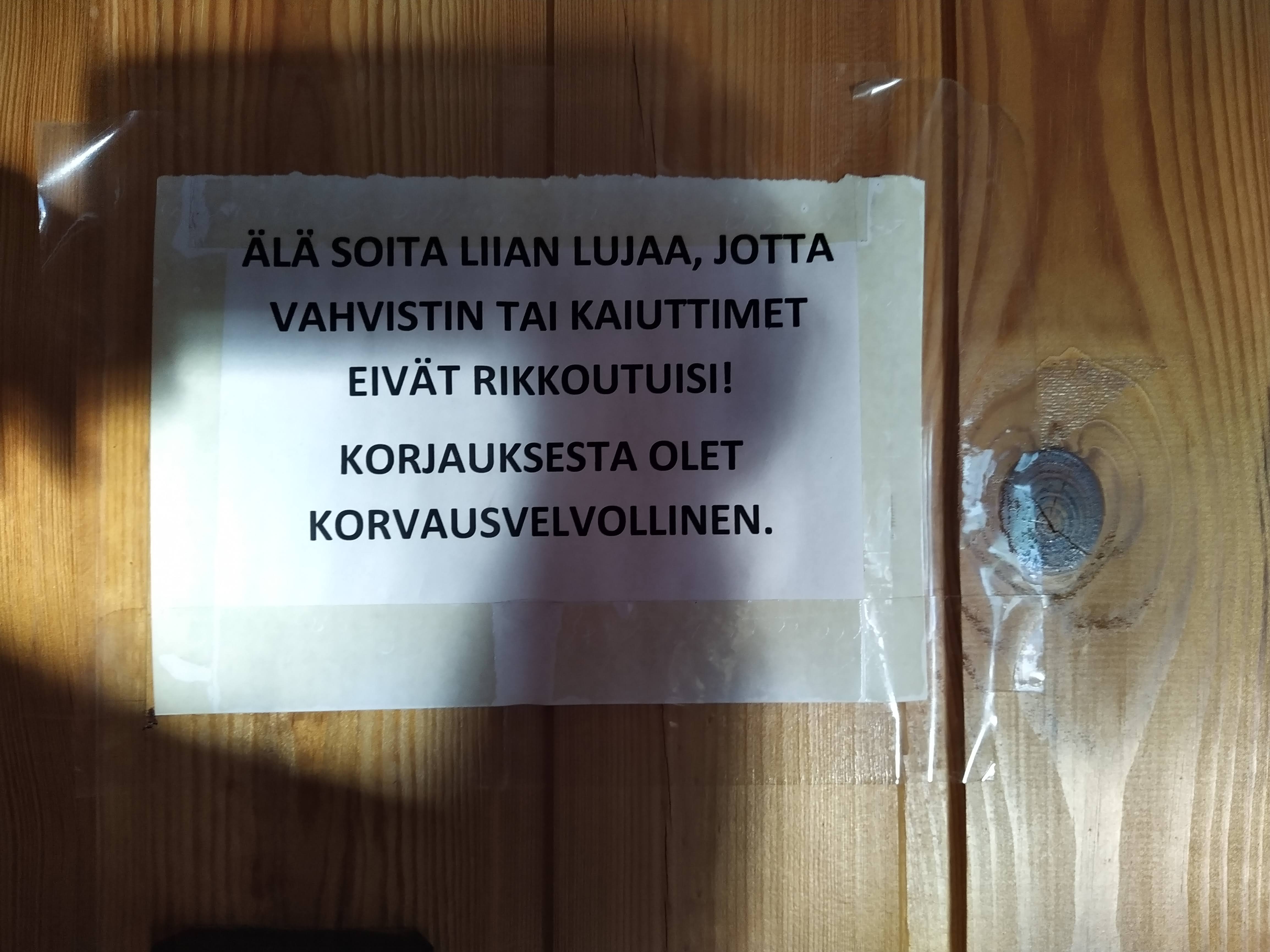 Keikkapaikalla odotti seuraavanlainen huoneentaulu: