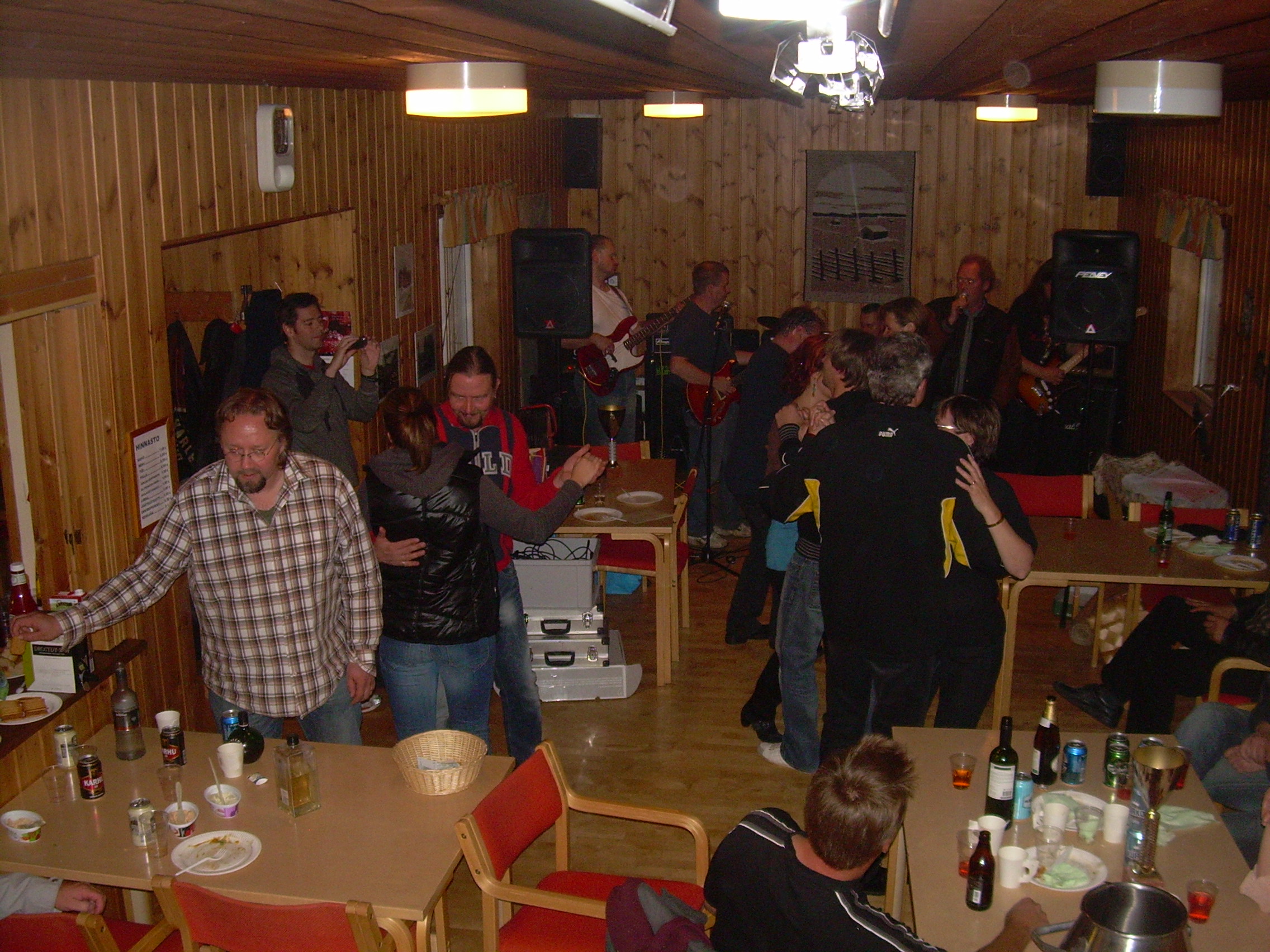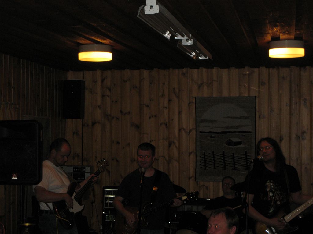 Tällä kertaa emme soitelleet settilistaa suoraan läpi, vaan hieman vaihtelimme kappaleiden paikkoja. Tämähän osoittautuikin ihan hyväksi ratkaisuksi, jolla saimme toisen setin aikana yleisön joraamaan oikein kunnolla --- pitää vissiin muuttaa tuota pysyvästikin. Jälkeenpäin ajateltuna olisi pitänyt kyllä kantaa pari pöytää ulkorakennukseen, jotta olisi ollut enemmän tilaa tanssia. Nyt lattialla olleen laulumonitorin ulkonäkö on enemmän rock-uskottava :-) mutta se ei menoa haittaa.
