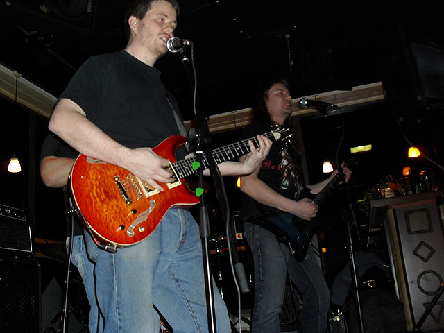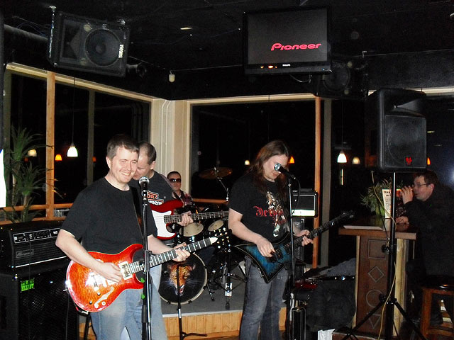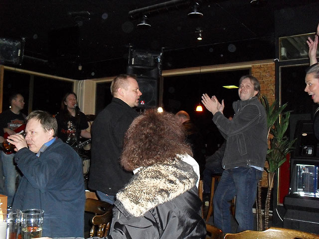 Väkeä tuli paikalle hyvin, mukavana yllärinä ainakin Juhalle ex-työkavereiden yllätysinvaasio... loistavaa! Keikka lähti rullaamaan hyvin, mitä nyt ekan kappaleen jälkeen paikan henkilökunnan kommentti "soittakaa hiljempaa!" No niinhän se on, mukavampi se on baarissa oleskella jos pystyy kommunikoimaan muutenkin kuin viittomalla ja savumerkeillä.