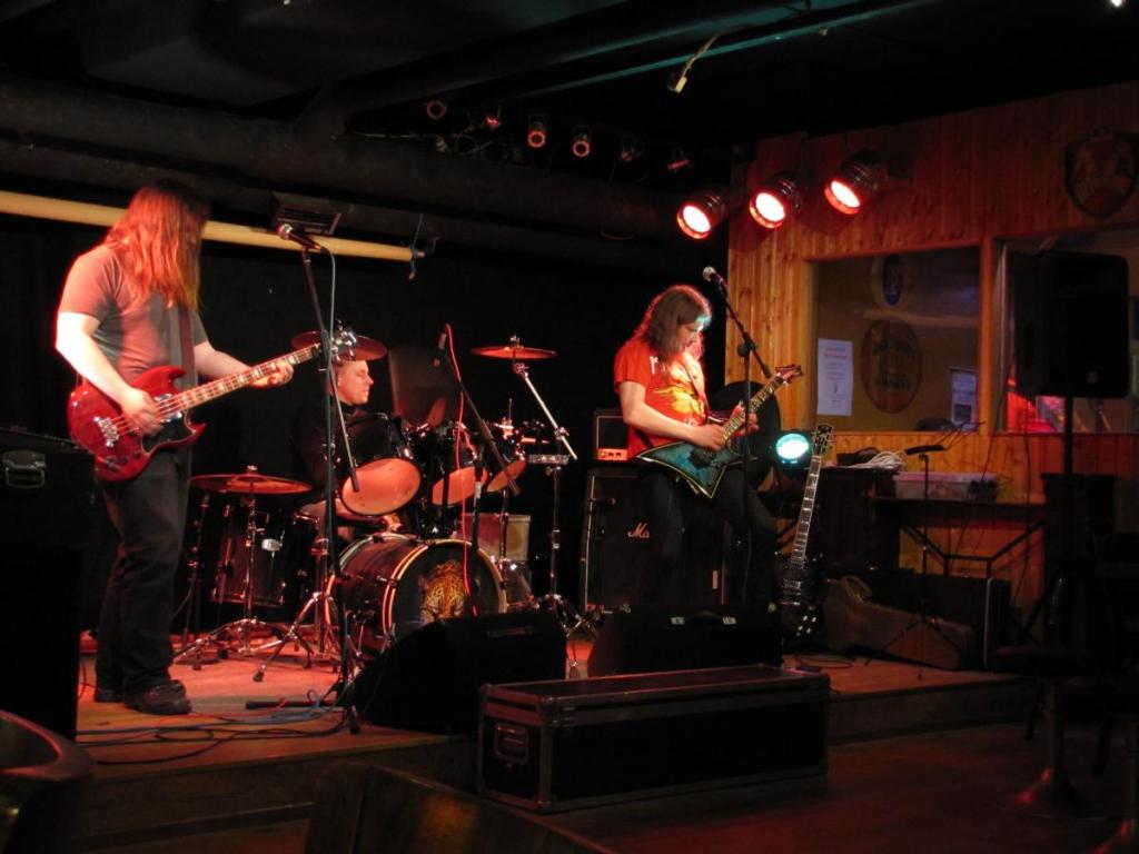 Jo vain sitä kelpasi settilistaa viilata näissä oloissa :) Ja hieman poikkeuksellisesti on päässyt koko bändi samaan kuvaan. Kiitokset tästä samoin kuin videomateriaalista Terolle. Eipä sillä, olisihan siellä baarin puolellakin viihtynyt. Ilta oli harmittavan hiljainen mutta alkuillan karaoken taso oli melkoisen kova... Loppuun hieman materiaalia keikalta. Pitäisi vissiin hommata mustat piuhalaatikot :)