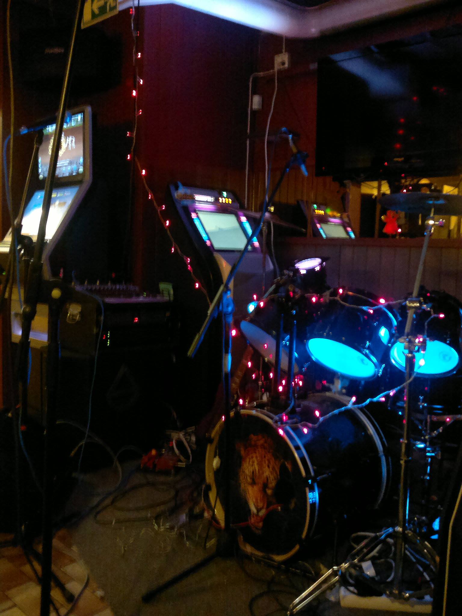 No ei kyllä pahasti mennytkään. Mikalla oli perusroudauksen jälkeen muuta kiirettä, niin allekirjoittanut jäi Jyrkin kanssa pelipaikalle ripustelemaan jouluvaloja rumpuihin Mikan hoitaessa muita velvoitteitaan.